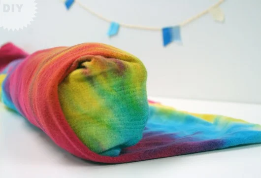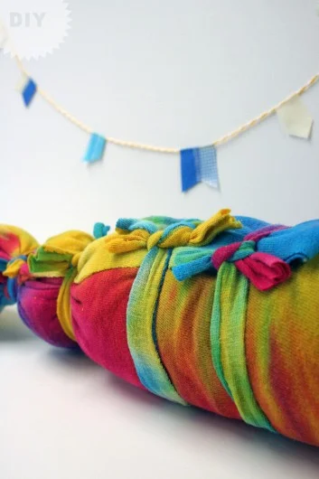 About a yard of fabric (we used an old tye-dyed bed sheet)