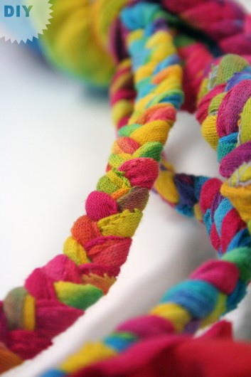 4. Cut the excess fabric near the cap of the bottle into 2″ wide strips. Then using three strips at a time, braid each section and finish off by knotting them.